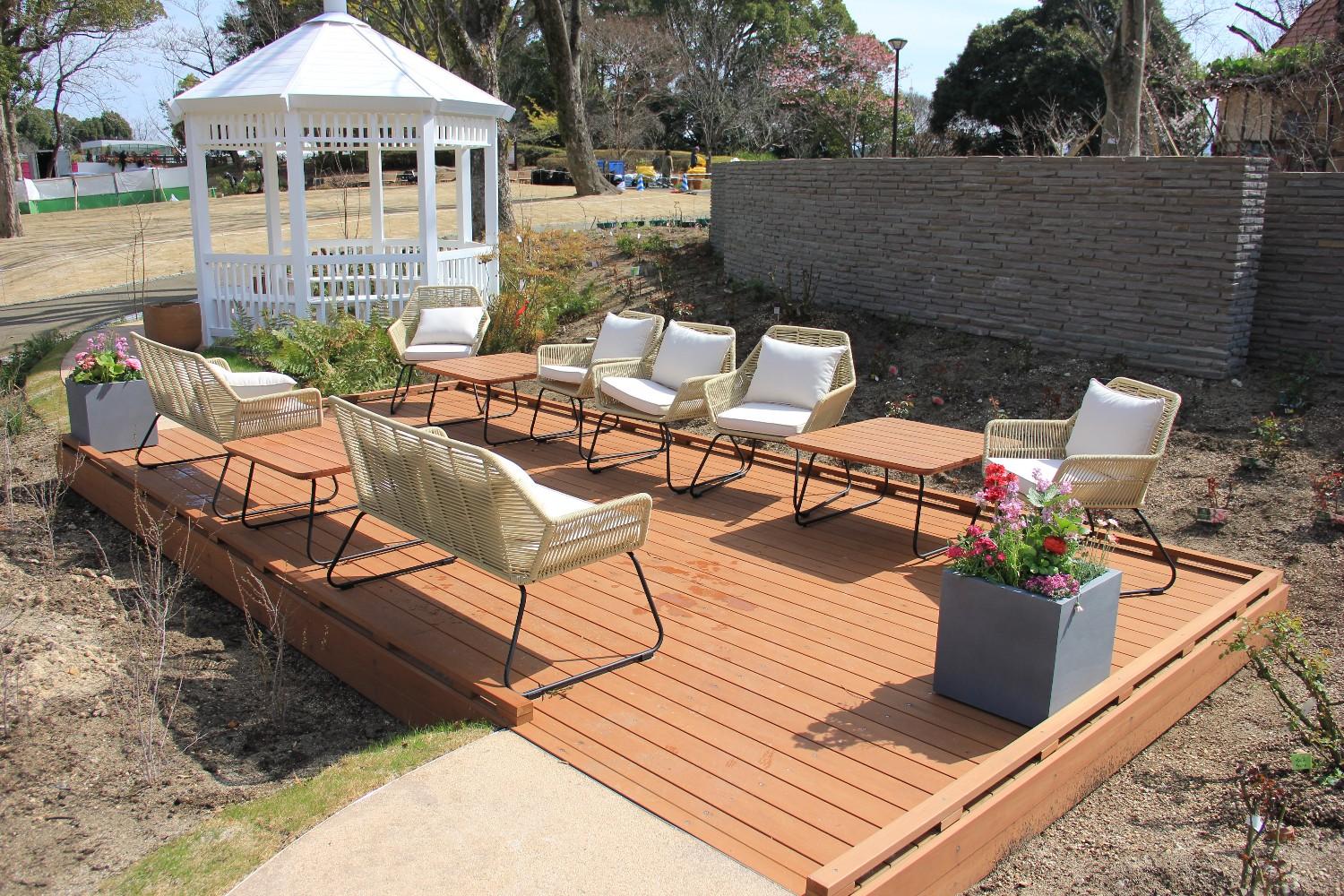 そのほか、パーゴラと水盤の「サーキュラーテラス」や花に囲まれてくつろいでいただける「デッキテラス」など、たくさんのフォトスポットもあり、これまで植物園に来る機会があまりなかった方々にも足を運んでいただけるような素敵なガーデンになっています。