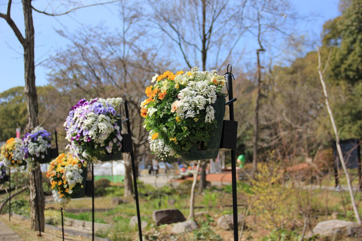 ガーデンを彩る花苗の一部は企業からご提供いただき、ハンギングバスケットの制作を緑のコーディネーターや花緑ボランティア、花壇の花植えを上智福岡中学高等学校の学生さんたちにと、多くの皆さんにご協力いただきました。